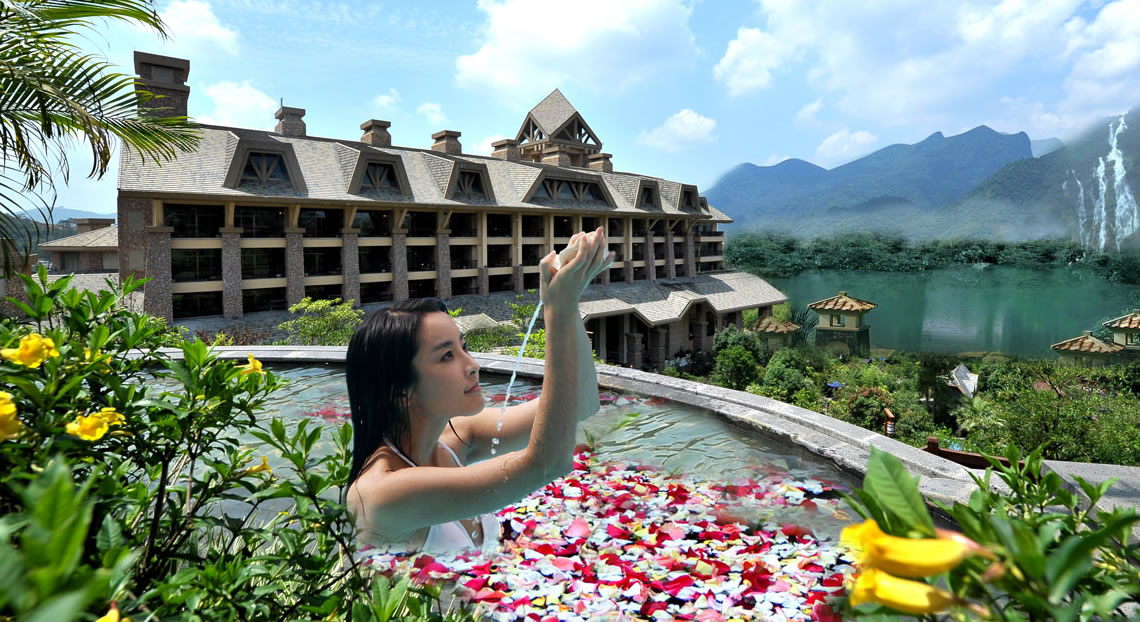 亮點(diǎn)三:68個溫泉泡池,輔以名貴中藥和奇花異草,給您帶來獨(dú)特的視覺、嗅覺、觸覺體驗(yàn)。漂流河“清揚(yáng)婉約”,沖浪池“潮起潮落”;客家米酒池“暗香浮動”;玫瑰泉“浪漫宜人”;茉莉花池“青春煥發(fā)”;香薰泉、檀香泉、當(dāng)歸泉、首烏泉…最讓人心動的是被千層巖重重包圍的美容池,猶如江南女子,精致細(xì)膩,婉約絕倫。